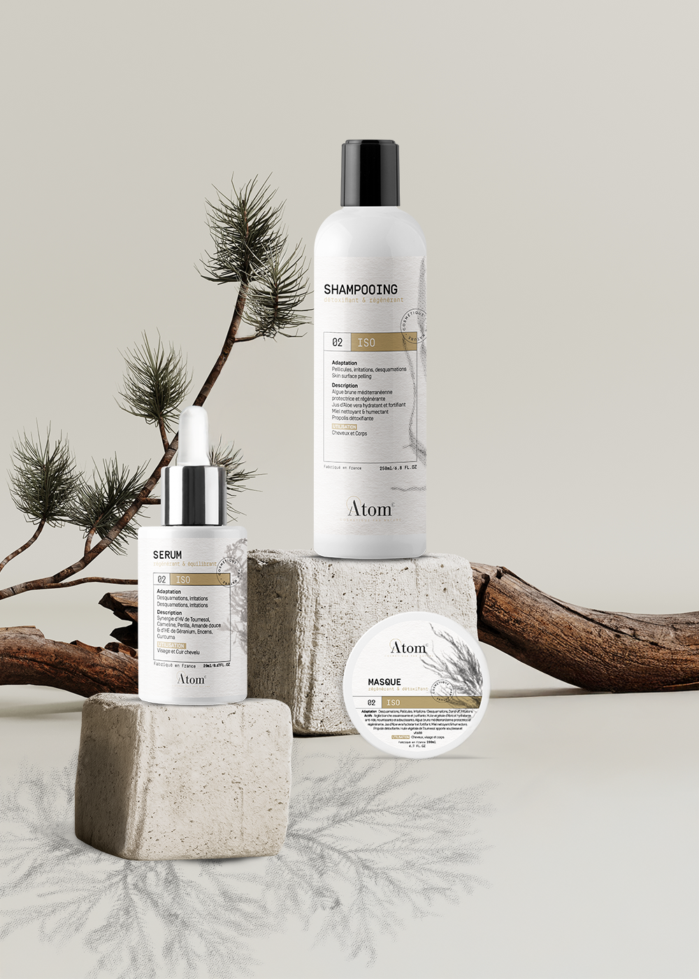Le Shampooing ISO : Le shampooing et le soin sont à base de l'algue méditerranéenne Padina Pavonica, capable de régénérer la peau et le cuir chevelu et de renforcer les défenses naturelles